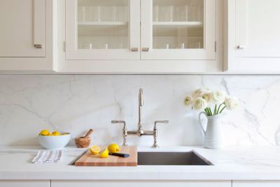 How do I maintain a backsplash in a kitchen with white cabinets?